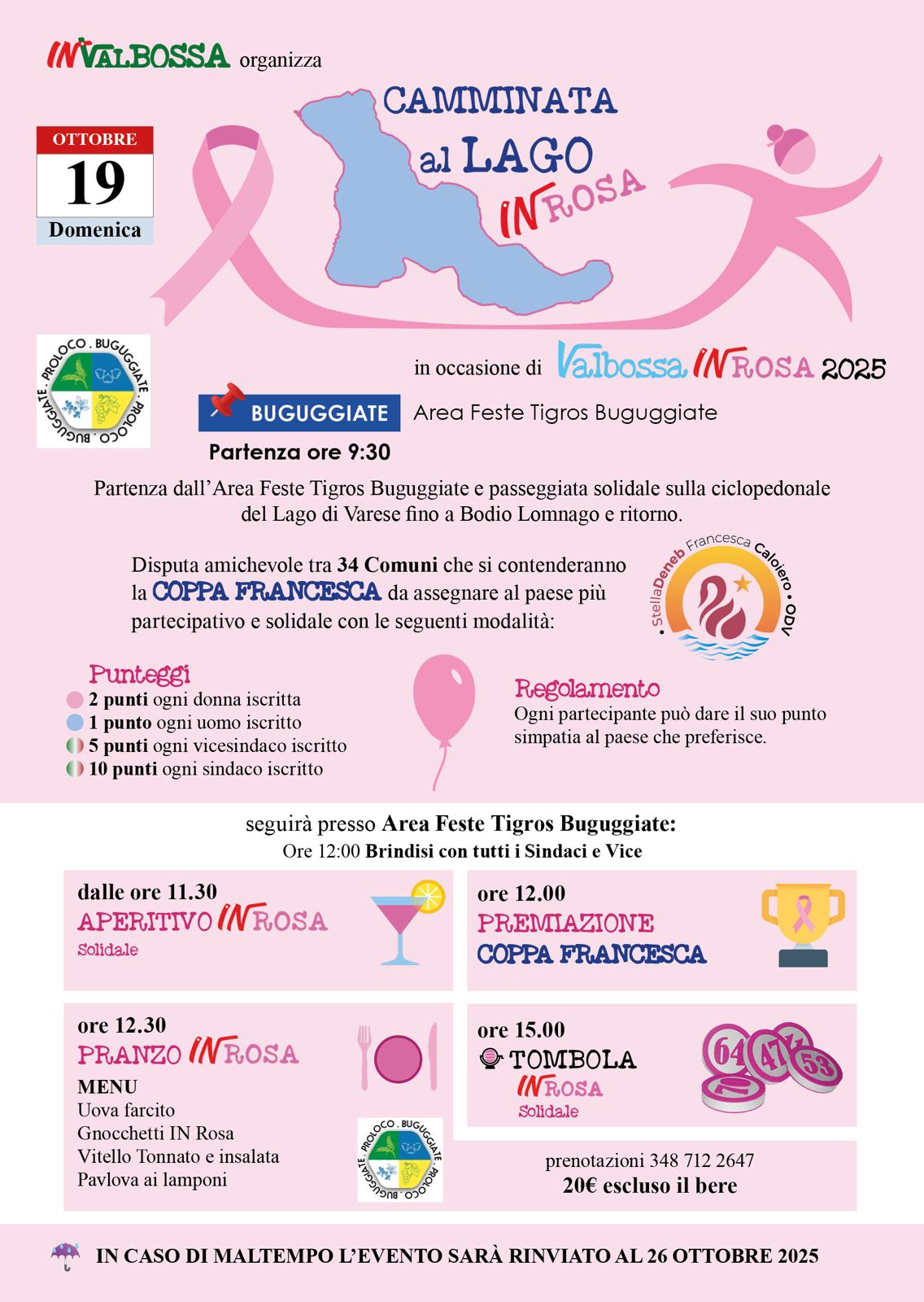 in allegato volantino camminata del 19 ottobre e deplian valbossa in rosa 2025